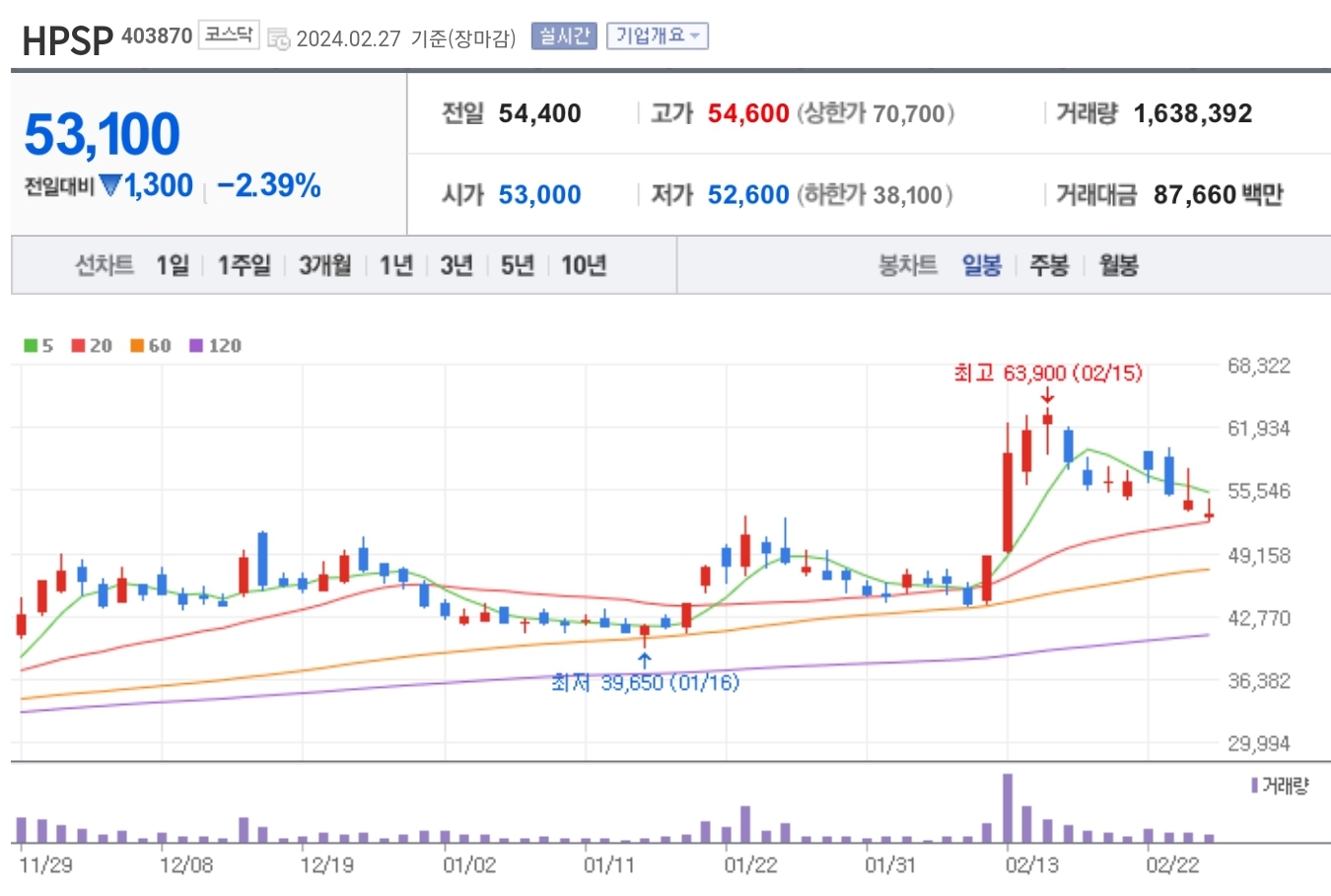 - 시가총액 : 4조 9,458억 원 (2/27 기준)